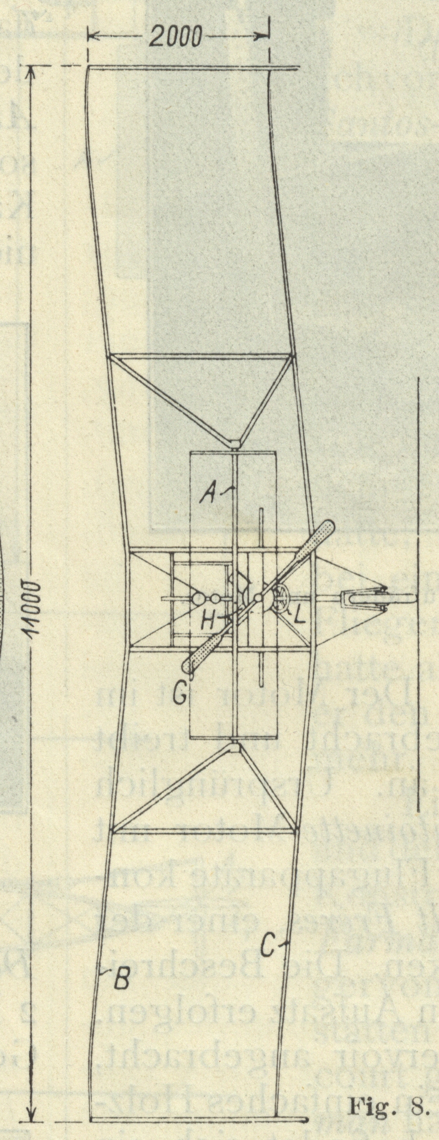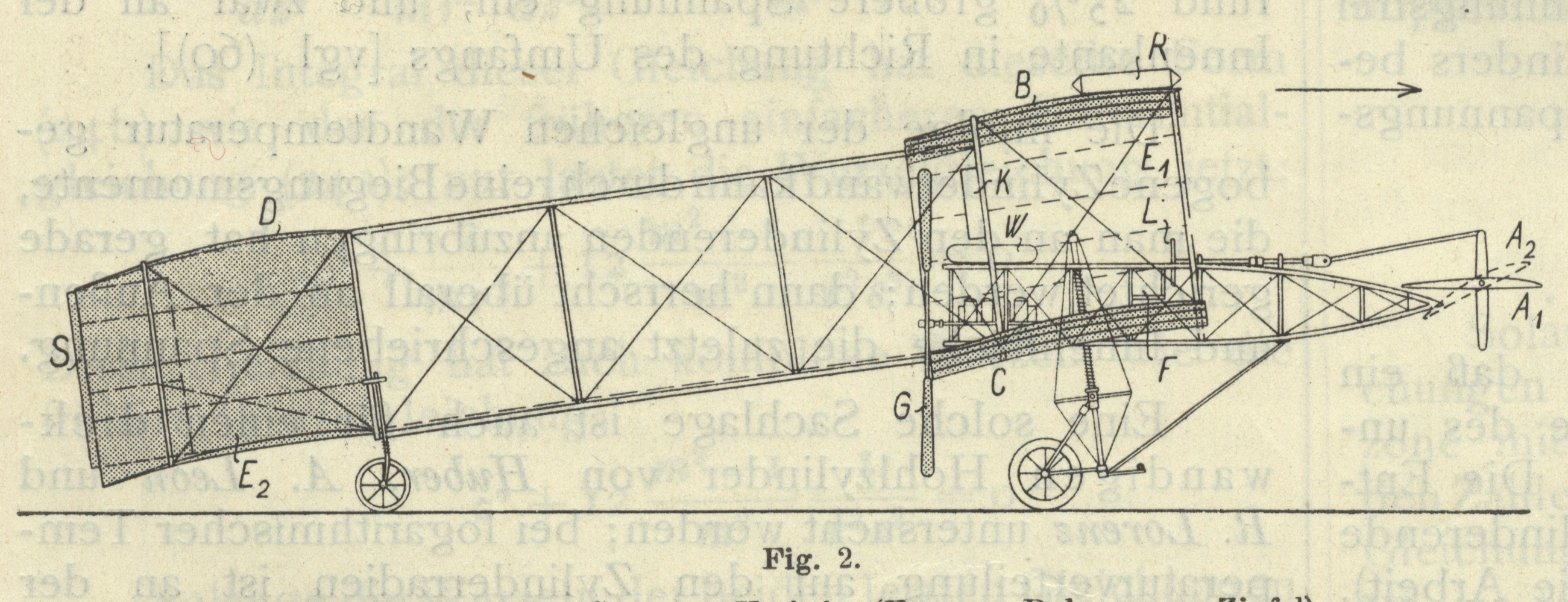 Flugrichtung ist noch eine Schwanztragfläche vorgesehen, die anlangen Streben,