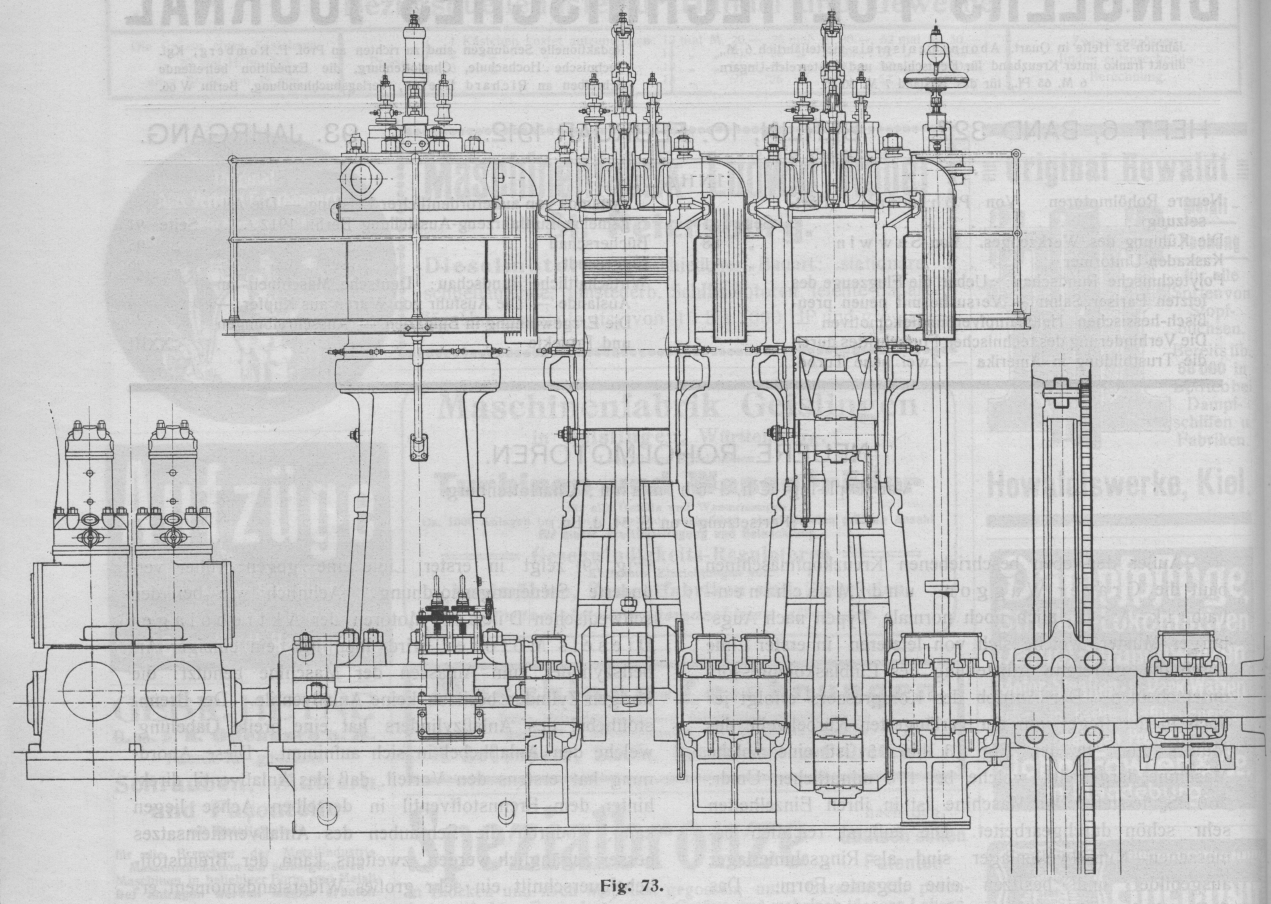 die Kurbeln um je 90° versetzte. Da in diesem Fall noch bedeutende Kippmomente
