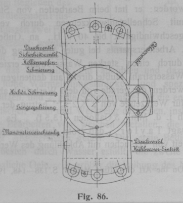 durch eine Schmierölpreßpumpe durch ein Oelkühl- und Reinigungsgefäß gedrückt, um