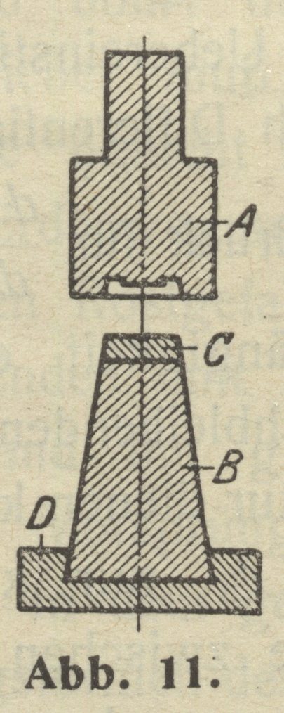 11) in die Form der Abb. 12 gedrückt. Die Werkzeuge (Abb. 9 und 11) bestehen je aus