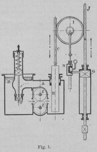 Die Bewegung des Kolbens F erfolgt durch einen zweiten