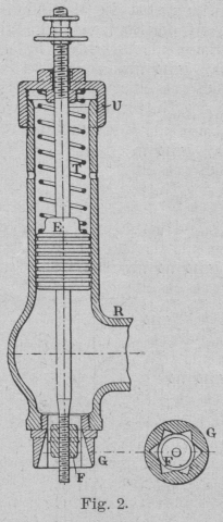 der Feder T, deren Grösse durch die Schraube U zu regulieren ist. Unter der Wirkung des so